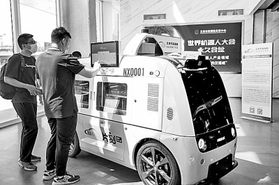 2021年,无人配送车合规上路首次在京实现。图为北京市高级别自动驾驶示范区展示的无人配送车。新华社发
