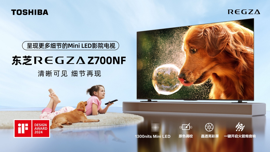 4月8日,东芝电视Z700NF系列正式开放预售。其搭载1300nits Mini LED,从控光、峰值亮度、屏幕、音响等各方面,解决用户观影时因亮度不够导致的细节过少、模糊等痛点,让用户体验细节更清晰的电视音画表现,从而拥有更沉浸舒适的观影体验。