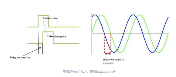 此外,激光雷达发射的光波存在两种调制方式:直接飞行时间(Direct-ToF)测量和间接飞行时间(Indirect-ToF)测量,直接测距,是通过发射、接收光并测量光子飞行时间,直接计算确定距离,而非直接测距iToF,是通过测量发射波形和接收波形间的相位差来换算,从而确定距离,直接测距拥有响应快、功耗低等优势。