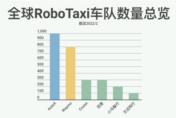 此前,全球最大的RoboTaxi车队来自谷歌母公司旗下的Waymo,车队规模约800台,包括克莱斯勒Pacifica大捷龙以及捷豹I-Pace。而国内其他企业的自动驾驶车队均在100台 - 300台量级。