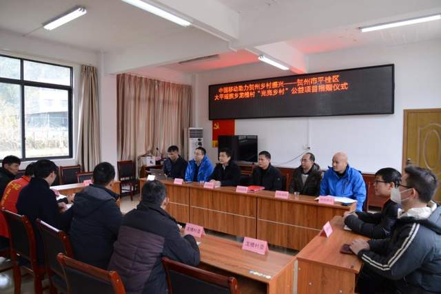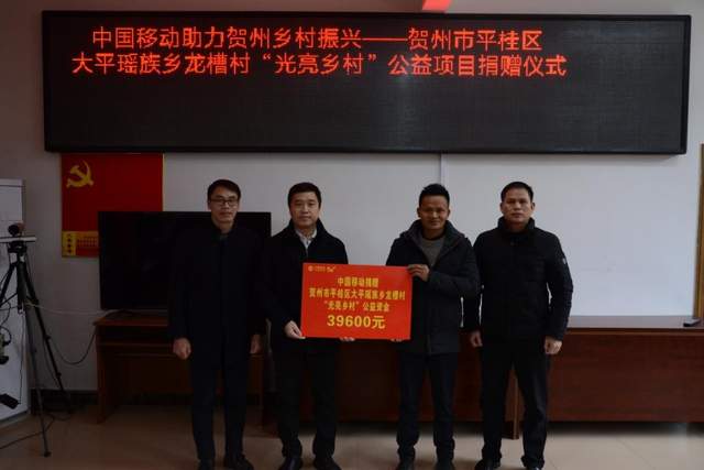 1月16日,贺州市平桂区大平瑶族乡龙槽村“光亮乡村”公益项目捐赠仪式在龙槽村委举行。中国移动广西公司贺州分公司(以下简称“贺州移动”)总经理徐鹏、平桂区民政局局长、慈善总会会长朱明识、大平瑶族乡政府以及龙槽村村委干部和驻村干部出席捐赠仪式。