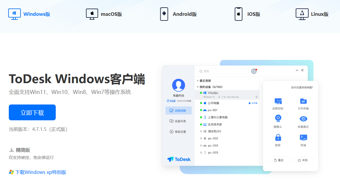 ToDesk是身边很多人迄今为止最顺心意的远程控制软件,是千万用户的远程选择,不仅能稳定地实现电脑控制电脑,还能手机控制手机;跨设备、跨系统办公都能做到。