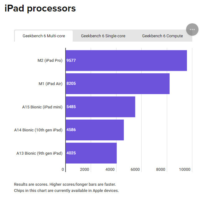 Mac 芯片的性能自然是最强的,其次是 iPad 和 iPhone 上所用的信息,不过从跑分来看,iPad Pro 的性能和 MacBook Air 差别不大; 399 美元的 iPhone SE 和 899 美元的 iPhone 14 之间的性能差异,并不像它们的价格差异所显示的那么大。