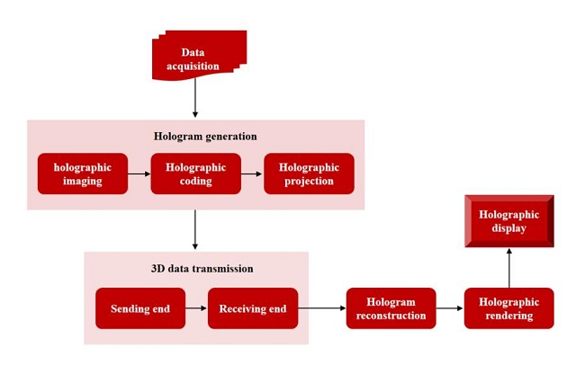 值得关注的是,微美全息此前开发了实时三维全息通信系统,可以创造出沉浸式直观与真实的通信体验。资料显示,微美全息的实时三维全息通信系统是一个集捕获、全息图生成、传输和显示为一体的系统,其能够提供更加真实、立体的视觉体验,使通信更加生动和直观。系统通过将信息编码成光学全息图像,并使用全息投影技术将图像还原到空间中,实现了在远距离传输和显示三维图像的功能。