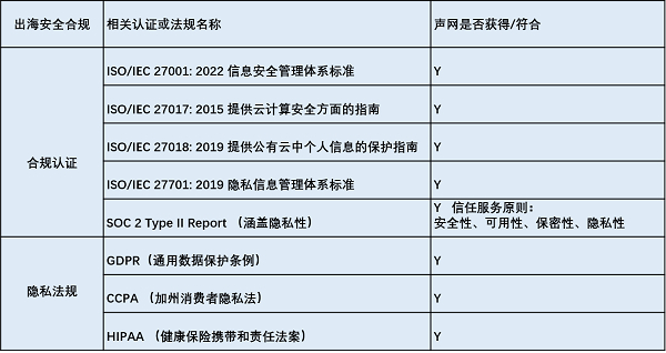 此外,声网还建立了和全球主流领导性的安全合规合作伙伴的深度合作,包括权威标准认证机构DNV·GL,信息安全及隐私保护咨询服务机构EY,以及在美国市场具有领导力地位的安全解决方案厂商SpyderSec、Panorays等,以保障平台产品遵从包括欧盟《通用数据保护条例》(GDPR);美国《加州消费者隐私法》(CCPA)、《健康保险携带和责任法案》(HIPAA)等国外的法律法规要求,为企业出海提供更全面的安全合规保障。