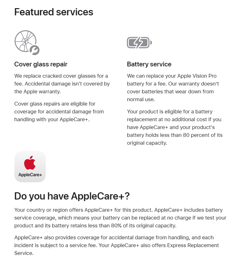 1 月 20 日消息,万众期待的苹果 Vision Pro 头显在美国开启预售之后没过多久,官网公布了它的维修费用信息。