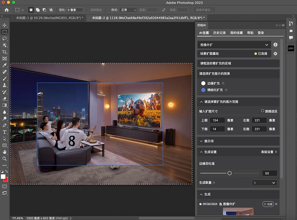 此外,还有智能扩图功能,小场景一键扩充,秒变大场景。AI能够智能地补全扩展部分的内容,得到更大的图像同时保持视觉风格一致,节省设计师手动修复的时间和精力。