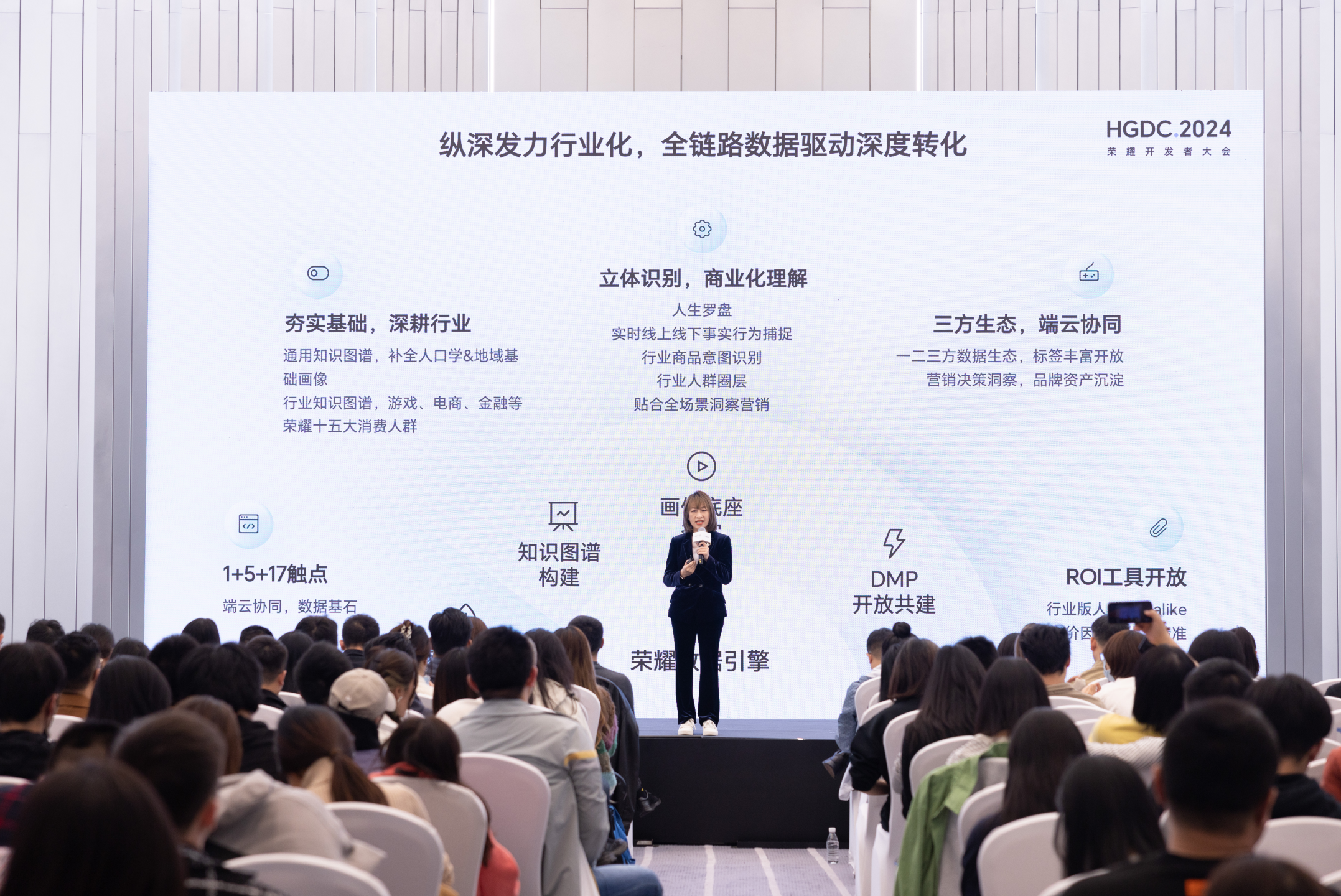 从应用分发、服务分发、内容分发到联盟流量,荣耀商推平台发挥终端优势,流量覆盖用户使用全场景、全周期,保障流量稳定增长。伴随荣耀商推平台服务能力的强势反弹,智能投放能力也高速迭代,从cpc扩展到ocpx,从定向升级到智能拓量,从手动选择到系统优选,还有动态RTA融合画像标签、跟随投放等产品能力不断迭代推出,2024年一年时间,荣耀商推平台就汇聚了荣耀内外日均超30亿的曝光量,三方媒体数突破4000家,广告主超5000个,发展速度迅猛,并将持续深耕广告深度优化和投放效率。不仅如此,荣耀商推平台还通过端云协同的数据优势,通用和行业知识图谱的构建、立体识别人群圈层的坚实用户画像底座,以及DMP的开放共建,全链路数据驱动助力投放的深度转化。