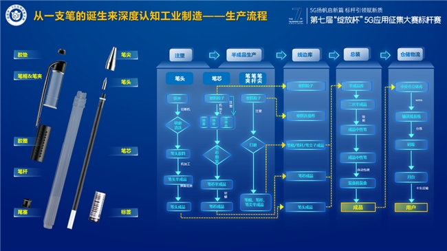 在标杆赛获得金奖项目中,浙江移动为得力集团打造5G+AI笔检、5G+AI码垛、5g+AGV等8大典型应用,涉及到生产、办公、仓储、物流等多个环节,通过自动化改造+AI算法+大数据+5G+云计算等几种关键技术,帮助得力质检效率提升130倍,助力得力降本增效,成为文体行业标杆。