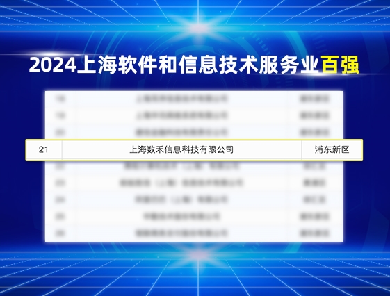 近日,上海市经济和信息化委员会发布“2024上海软件和信息技术服务业百强”名单,今年,数禾科技凭借扎实的技术实力和强劲的增长势头,再次荣登“百强”榜单,位列21名。