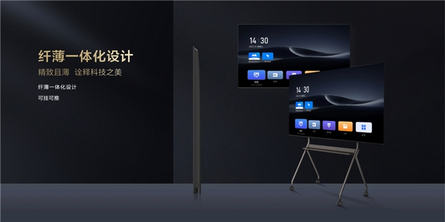 在外观设计上,TCL办公智屏采用纤薄一体化设计,整体贴合会议场景的需求,同时轻便稳固的支架设计,让屏幕占地空间更小的同时,选择移动推车的话更便于挪动。由于设备结构简化,清洁和维护工作也变得更简单,不仅能有效提高工作效率,还能节省维护成本。