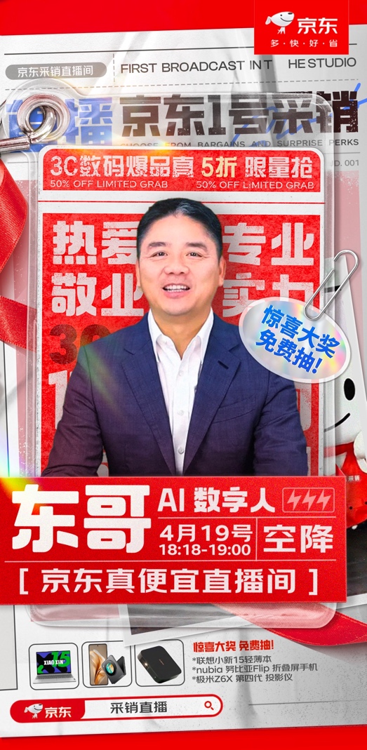 AI人工智能技术迅猛发展,正在悄然改变着我们的生活。4月19日18:18-19:00,“采销东哥AI数字人”将空降京东真便宜直播间,为大家带来一场别开生面的采销直播,届时,“采销东哥AI数字人”不仅将在直播间为广大用户带来涵盖手机、笔记本、投影仪等一系列3C数码爆款产品,更有年度爆品限量真5折、爆品直播专享6.18折、直播限时直降等优惠福利限量开抢,让你轻松拿下心动好物。即刻打开京东APP搜索“采销直播”预约,“采销东哥AI数字人”与你共同迎接这场精彩直播,更多惊喜福利,不容错过!