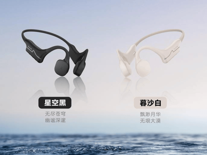 以「水陆两栖,音乐无界」为全新主张,鲸语Alpha定位水陆两用运动耳机,兼顾游泳与陆地日常运动音乐需求,星空黑与暮沙白两款配色全新亮相。
