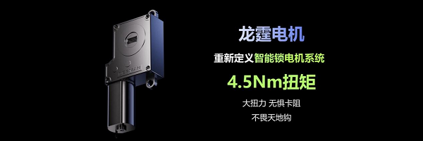 德施曼剧透的第二大黑科技——独家首创的龙霆电机,超强大扭力输出,更配中国门。据悉,龙霆电机扭矩高达4.5Nm,是传统大电机的1.68倍,内置小电机的10倍。