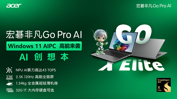 宏碁扎根PC行业,面对AIPC新时代的到来,发挥自身积淀深厚的产品设计能力与生产能力,运用微软系统高度融合AI软件优势与高通骁龙核心架构提供的高算力支持,第一时间推出宏碁首款Windows 11 AIPC非凡Go Pro AI 创想本,并于5月21日同步开启预售,真正做到了全球第一时间,搭配宏碁独家开发的“A星人”智能操作系统,为用户带来跨越时代的智慧生活体验。