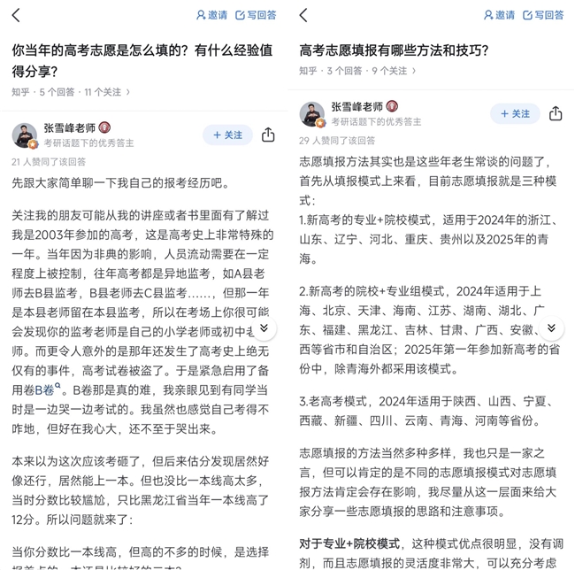 作为长期关注高考动态和考生需求的专家名师,张雪峰在知乎创作了超过800条内容,积累147万关注者。今年高考在即,张雪峰在相关问题下分享了自己高考填报志愿的宝贵经验,讲述自己在面临“鸡头还是凤尾”难题时是如何选择的。在他看来,高考固然依靠学习成绩,但在志愿报考层面,“选择比努力更重要”。