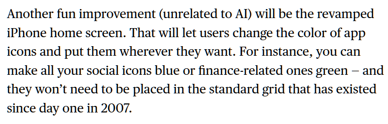 古尔曼:苹果 iOS 18 将提供更多主屏幕定制功能,支持更改 App 图标颜色