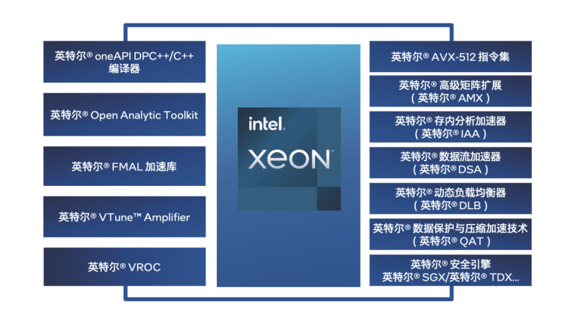 此外英特尔至强6处理器已于近期发布,提供了两种不同的 CPU 微架构版本,分别为性能核 (P-core) 和能效核(E-core),让多种工作负载的性能和能效表现再创新高。其全新功能和内置加速器为目标工作负载带来进一步助力,实现了更高的性能和能效。
