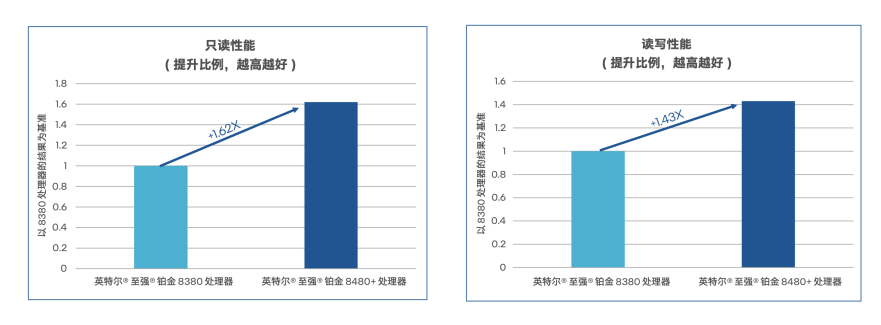 比如PingCAP推出的TiDB开源分布式数据库就得益于第四代英特尔® 至强® 可扩展处理器卓越的代际性能,其数据库的只读性能与读写性能分别达到基准配置的1.62倍与1.43倍。