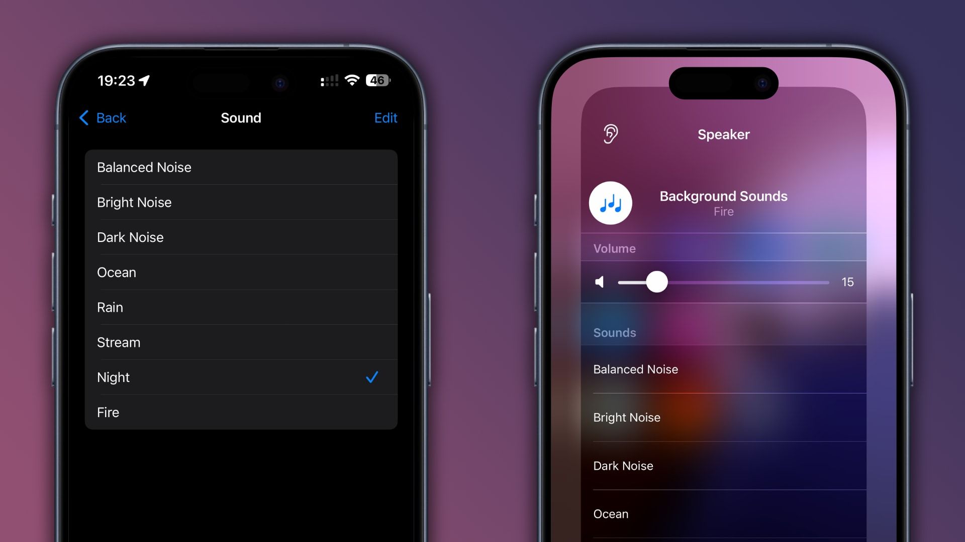 总数达8种,苹果iOS18新增Night和Fire背景音:帮助用户专注/休息