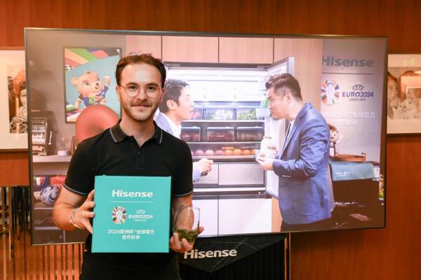 “用大屏激光电视观看欧洲杯,球场上的运动员动作很流畅,而且刚才近距离看画面,眼睛也没有不舒服,声音的立体效果,提升了观赛体验。”7月12日,在英中贸易协会与欧洲杯官方合作伙伴海信联袂打造的“欧洲杯璀璨之夜”主题活动上,瑞士驻华大使馆文化媒体处Guillaume Muriset对海信激光电视的护眼功能赞叹不已。