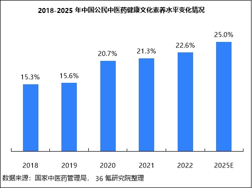 图1.1 2018-2025年中国公民中医药健康文化素养水平变化情况