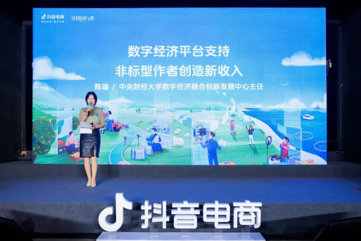中央财经大学数字经济融合创新发展中心主任陈端在会上表示,在场创作者的分享令她颇受触动,“这种质朴平凡中蕴藏着的温度感和生命力,是我们这个社会重要的精神财富。”如今,数字经济创造的 “数据价值链”正成为人们创业和致富的沃土,从供需两端带来崭新的契机。“未来我们的商业创新内生动力从何而来?重点在于如何激发每一个普通劳动者和消费者的热情,同时以平台之力赋能个体,让个体的技能借助线上新渠道得以释放到新场景之中。”陈端表示,很多普通劳动者有一技之长,有谋生需求和创业热情,但并不具备把自身分散的技能快速进行产品化供给和品牌化推广的能力。以抖音电商为代表的平台加速和推进了这个过程,助力供需双方资源能力匹配对接,逐步带动更多非标型电商创作者入驻,帮助他们通过专业技能撬动生意,获得收入。