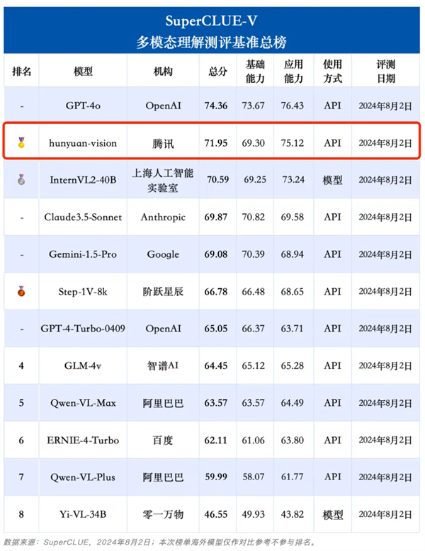 在最新发布的中文多模态大模型SuperCLUE-V基准评测中,腾讯混元大模型获国内排名第一,稳居卓越领导者象限。