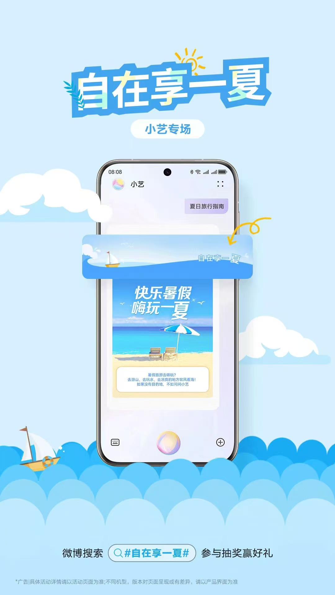 流光半夏,美好日长,夏天的限定快乐从不打烊。近期华为在微博开启了「自在享一夏」活动,大家只需唤醒小艺,对小艺说“夏日旅行指南”,在包含“自在享一夏”文字的活动页截图,去微博#自在享一夏#话题页打卡并发布微博,就有机会获取HUAWEI Pura 70 Pro等超级大奖!参与活动的同时,也不妨深度体验下全新小艺的问答功能,有事没事问小艺,让我们跟小艺一起发现暑期生活的更多美好。