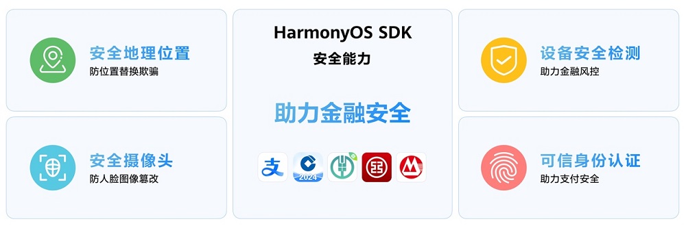 信息安全和财产安全,是用户对金融理财类应用的基本要求,各大金融机构都在不遗余力地提升应用的安全性。HarmonyOS SDK提供了丰富的安全能力,可帮助金融理财应用进一步提升安全性。比如可防位置替换欺骗的“安全地理位置”、可助力金融风控的“设备安全检测”、可防止人脸图像被篡改的“安全摄像头”、可助力支付安全的“可信身份认证”等等。这些安全能力已在中国建设银行、中国农业银行、中国工商银行、招商银行、民生银行等伙伴的鸿蒙原生应用中落地。