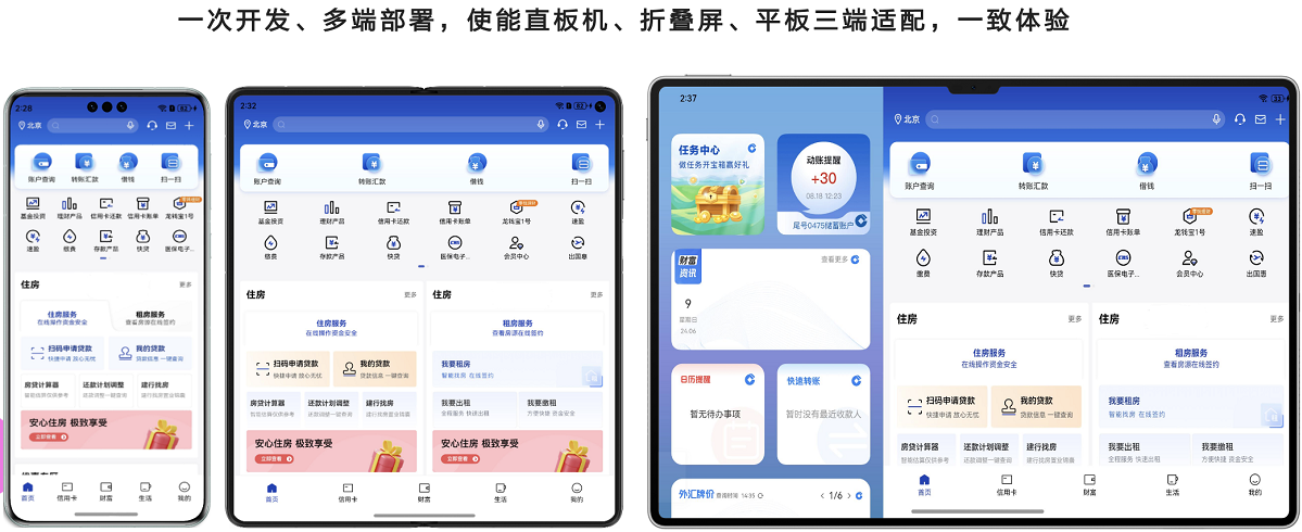 HarmonyOS NEXT还在多个方面提升了金融服务的便捷性。通过HarmonyOS NEXT一次开发多端部署的能力,快速构建了可在手机、折叠屏、平板等设备上提供一致体验的鸿蒙原生应用。并且还支持跨设备操作,无需重新打开应用、无需中断操作,即可实现金融服务的丝滑流转。