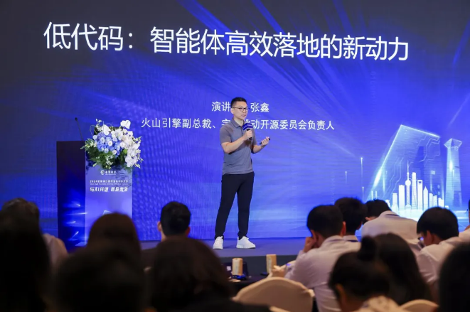 火山引擎副总裁张鑫受邀发表《低代码:智能体高效落地的新动力》的主旨演讲,分享了大模型时代火山引擎推动智能应用快速部署的技术举措,并回顾了双方在智能体应用探索上的合作成果。