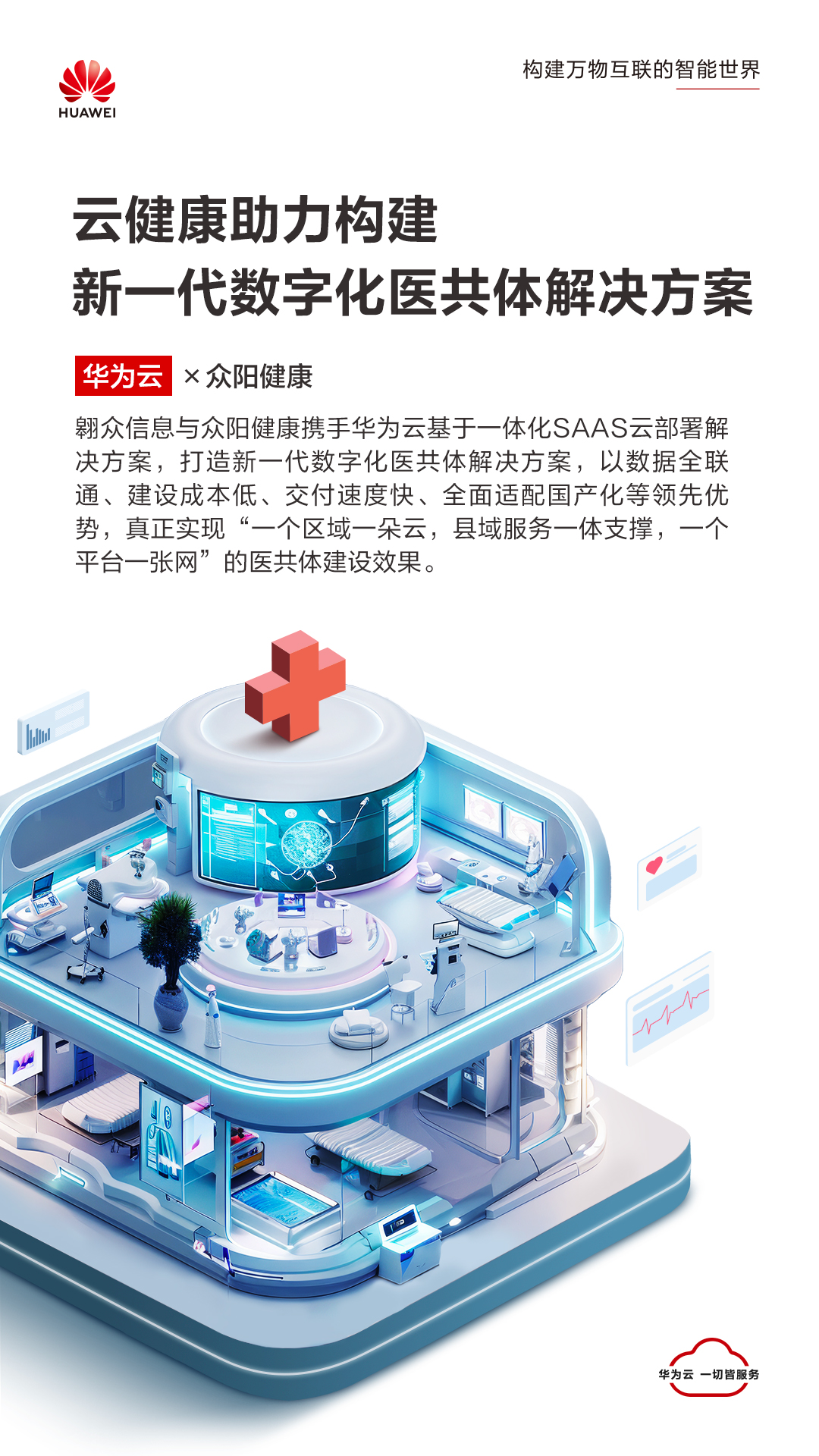基于华为云的强大计算能力、安全稳定的云基础设施,以及翱众信息在云服务方面的专业服务,众阳健康打造的紧密型县域医共体解决方案,实现了县域内业务与数据的一体化、医疗与健康的一体化、运营与管理的一体化,全面满足医共体内人财物统一管理、上下协同联动、多条线业务融合等多方面需求。该解决方案让“一个区域一朵云,一个平台一张网、一生服务一个号、县域服务一体支撑”成为可能,并在不断实践迭代中形成了行业领先的竞争优势。