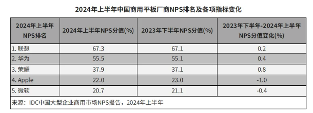 近日,国际数据公司IDC发布2024上半年智能终端商用市场品牌NPS排行榜,华为商用PC增速排名第一,华为商用平板总分第二。