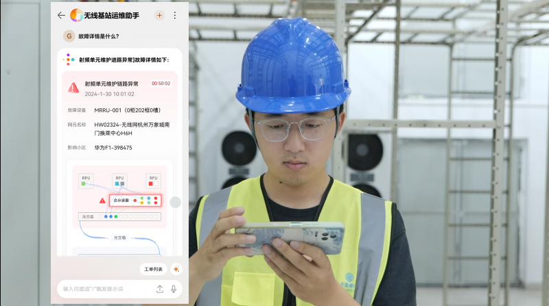 无线基站运维助手帮助站点工程师自主闭环故障。结合网络拓扑和故障自分析诊断能力,为站点工程师提供清晰的图文操作指导。目前在杭州全市,超过50名站点工程师在日常工作中使用,提升故障修复效率30%~40%。即使是新来的工程师,也能在没有后端专家支持的情况下,自主排查和解决问题。