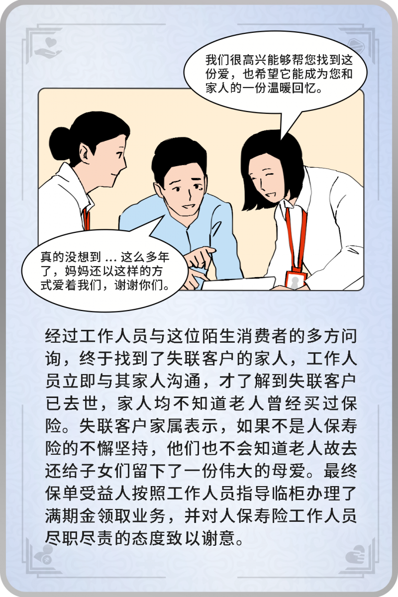 人保寿险“金融消费者权益保护”案例 唤醒一份“沉睡”保单 留下一份伟大母爱