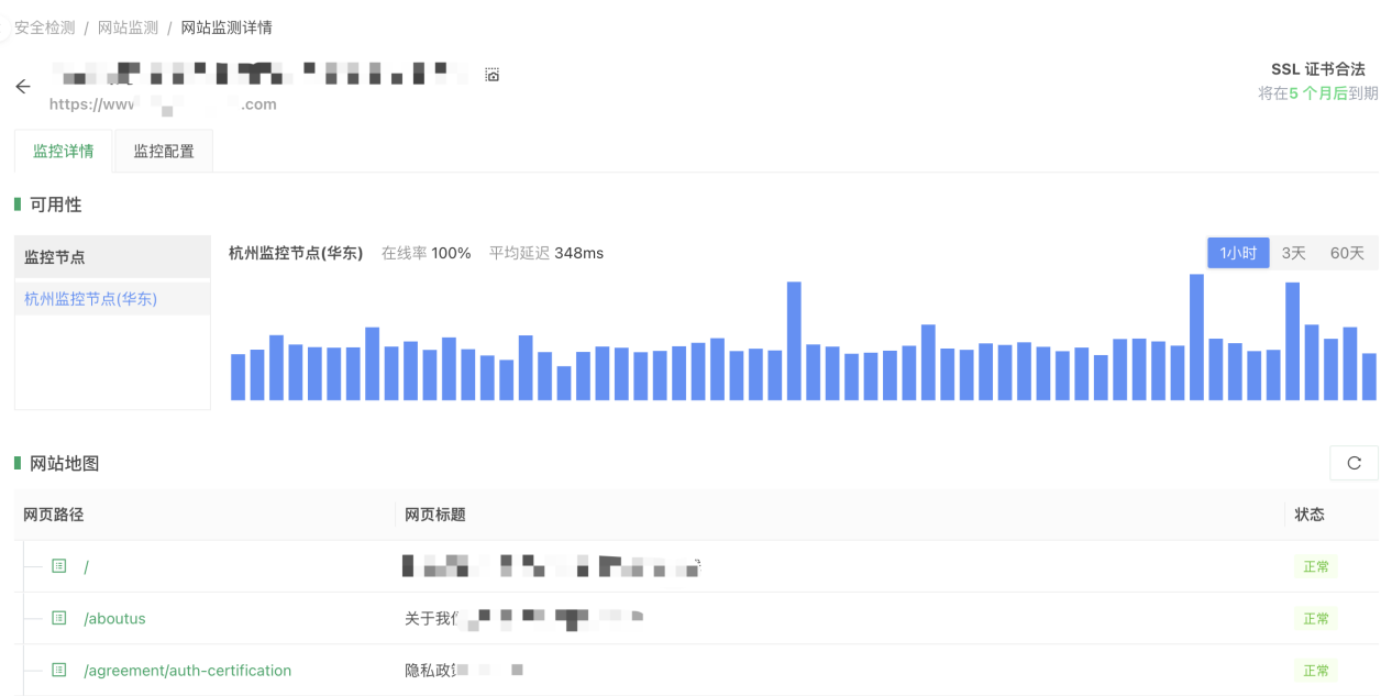 「网站监测」是专为有站点监测需求的用户打造的 SaaS 化产品,致力于解决用户网站风险监测难题,可实现对网络质量、页面性能、入侵篡改、内容违规、恶意连接、网站挂马、SSL 证书等场景进行周期性监控,支持多维度分析性能指标。利用可视化性能数据和告警通知,帮助用户及时对业务质量作出反应,保证业务稳定正常运行。