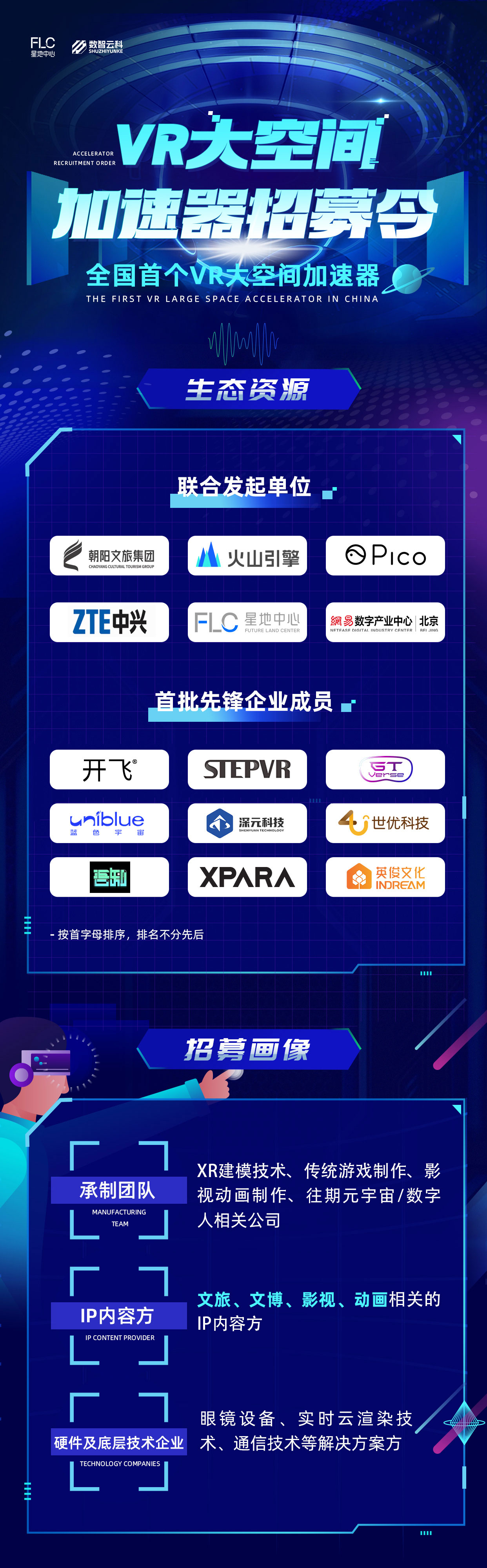 为了进一步促进产业发展,在朝阳园管委会(区科信局)的指导下,加速器联合朝阳文旅集团、火山引擎、PICO、中兴通讯、福石投资、创业黑马、网易(北京)数字产业中心等行业龙头,聚焦VR大空间领域,推出全国首个VR大空间产业加速器。
