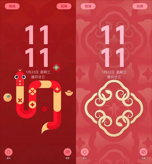 在最新版本的原生鸿蒙系统中,金蛇纳福壁纸和春节专属照片水印可以说是“年味拉满”。两款壁纸都采用了经典的四合如意纹设计,再结合蛇年生肖元素,为大家送上吉祥如意、心想事成的美好寓意。还没到春节,我就已经迫不及待地换上了!