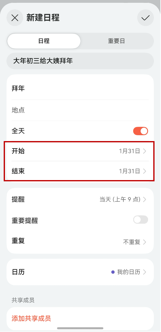 每逢春节,走亲访友、聚餐、购物、看贺岁档电影......时间总是被各种事情安排得满满当当。在最新版本的原生鸿蒙系统中,日历支持“一句话创建日程”功能,大家可以用日常口语化的表达直接输入需要添加的事项,比如在新建日程时输入“大年初三给大姨拜年”,系统就能自动识别日期、事件等关键信息,并创建好日程待办,事情再多也能管理得井井有条。