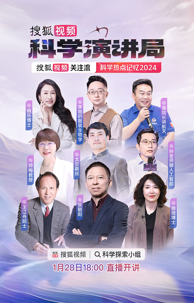 在辞旧迎新之际,搜狐视频邀请8位搜狐视频关注流人气播主,带领大家盘点一年的科学热点记忆,将于1月28日正式上线一场精彩的特别版科学演讲局。