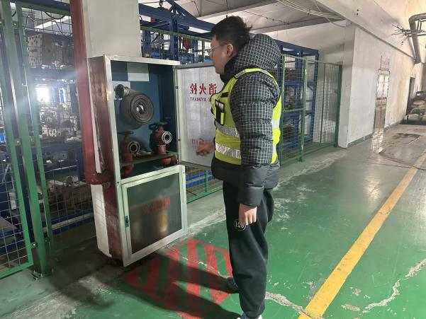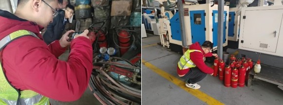 该分公司查勘人员对产业园区内生产型企业干粉灭火器的生产日期进行查勘,确保能够正常使用,并对二氧化碳灭火器压力表的有效性和室内室外消防栓的通畅性进行检测,保证突发灾害事件时能够及时应对。