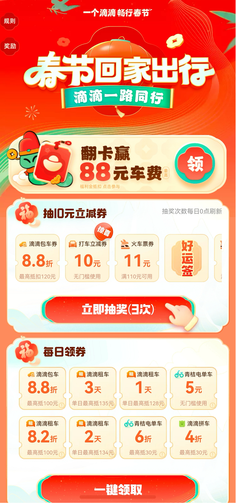 大家在春节返乡后,一定少不了走亲访友,手里提着大箱小袋的年货礼品,打车或驾车出行更方便。目前,鸿蒙原生版滴滴出行、T3出行、嘀嗒出行、阳光出行、曹操出行、一嗨租车、平安好车主等应用均已上架。就拿鸿蒙原生版滴滴出行来说,目前已具备打车、顺风车、代驾、拼车、骑行等众多功能,同时支持通过小艺语音快速打车,无需手动操作,出行更方便。不仅如此,鸿蒙原生版滴滴出行还在春节期间为大家带来了“翻卡赢车费”优惠活动,参与活动即有机会赢得打车费用减免优惠。鸿蒙原生版嘀嗒出行、阳光出行等应用则分别推出超省卡券、每日领券等暖心福利。而对于自驾的车主朋友们来说,鸿蒙原生版平安好车主上线了“车主年货节”,车主朋友们可以在线上以更优惠的价格购买各类年货产品,还有机会赢得加油券和洗车券;一嗨租车推出了“新春嗨庙会”,不仅有专属租车优惠券,铂金会员及以上的用户还能使用积分兑换上海迪士尼·米奇童话专列观赏位,福利多多超划算。