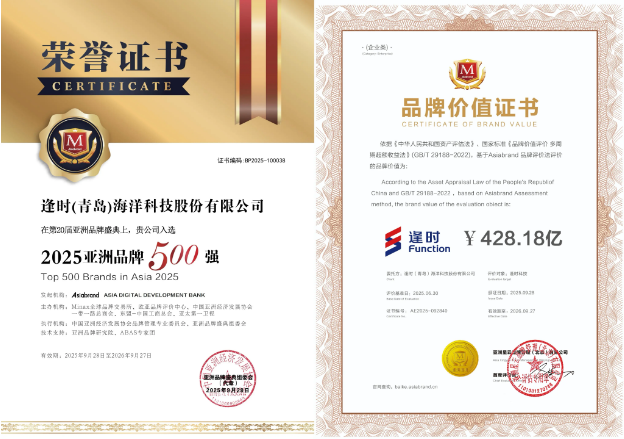 9月28日,专业品牌评价机构Asiabrand联合亚洲品牌研究院、ABAS专家委员会重磅发布“2025亚洲品牌500强”榜单。华为、国家电网、抖音、工商银行、阿里巴巴、华润集团、比亚迪等7家中国企业位列榜单前十。值得关注的是,逢时(青岛)海洋科技股份有限公司(以下简称“逢时科技”)连续3年上榜,位列第356位,较去年提升23个位次,品牌价值攀升至428.18亿元,是海洋药物和生物制品领域唯一上榜品牌。