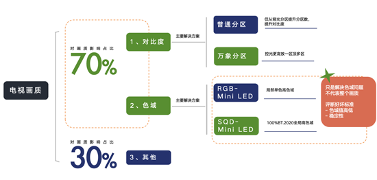 在SQD-Mini LED技术诞生前,全球显示行业对“好画质” 的认知存在明显局限:好画质是对比度和色域共同铸就的,但多数企业将重心放在对比度或分辨率的单一突破上,却忽视了“色彩稳定”这一核心需求。过去十年,尽管控光技术、对比度提升,但色域始终未能突破——无法在全场景下保持高色域稳定,多色复杂场景下的色彩失真、长期使用后的偏色问题,成为制约高端显示体验的关键瓶颈。