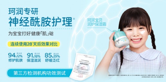 珂润深耕干燥性敏感肌肤护理近40年,1976年花王发现肌肤自身成分神经酰胺的保湿屏护作用,1993年珂润品牌诞生,持续聚焦神经酰胺技术研发。洞察到中国儿童护肤市场的巨大潜力与新生代父母的精细化需求,且发现儿童肌肤问题多源于神经酰胺缺乏与屏障脆弱,珂润决定延伸其核心技术优势。2024年,正式宣布进军儿童护肤领域,针对中国幼嫩肌宝宝特性推出珂润宝贝润护系列。