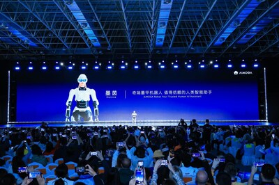 "我的故事要从三年前说起。"在奇瑞集团CTO高新华博士的精彩发言后,墨甲机器人"墨茵"登台亮相,并自主完成整场能力展示与演讲发布。在短短三分钟内,她系统回顾了奇瑞墨甲机器人从最初构想到产品落地,再到走向真实场景与全球市场的历程。