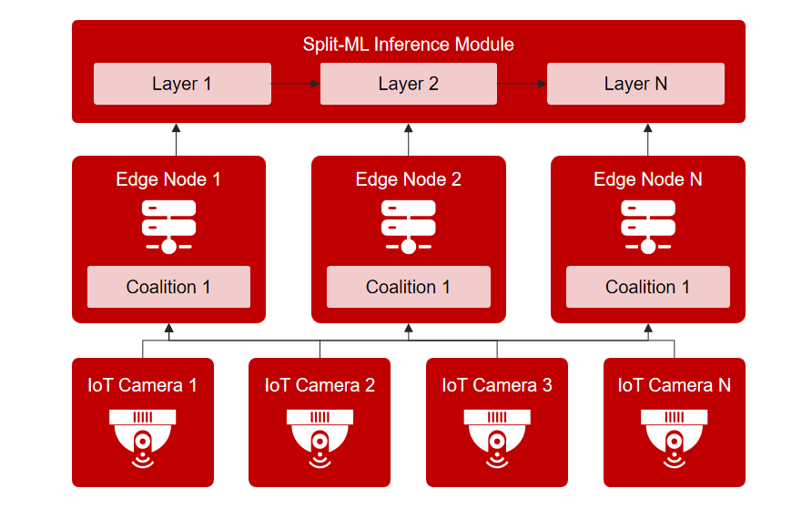 然而,边缘节点本身也面临计算资源有限、设备异构性强、动态负载波动等问题。如何对接入边缘系统的物联网摄像头做出最优的关联决策,并合理配置计算任务、分配带宽资源和选择合适的深度学习推理模型,成为制约系统性能提升的关键瓶颈。为解决这些问题,微算法科技(NASDAQ:MLGO)自主研发了技术方案:“基于联盟形成博弈的隐私与能量感知分割深度学习推理算法”。这项技术融合了联盟博弈理论、分布式机器学习模型和资源感知优化机制,旨在重塑边缘计算系统中物联网摄像头与边缘节点之间的协作方式。