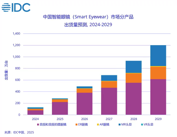 10 月 20 日消息,IDC 今日发布报告,2025 上半年,全球智能眼镜市场出货量达 406.5 万台,同比增长 64.2%。IDC 预计,到 2029 年,全球智能眼镜市场出货量将突破 4000 万台,其中中国市场份额将稳步提升,预计五年复合增长率(2024-2029)将达到 55.6%,增速位居全球首位。