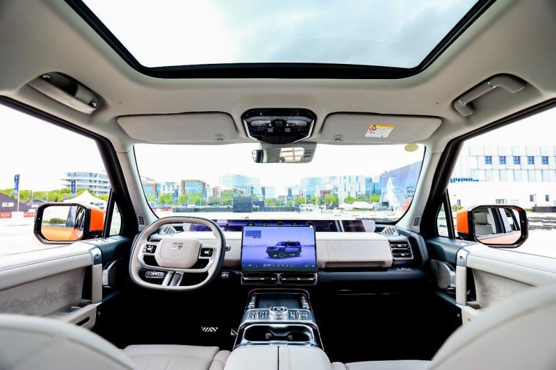 豪华越野的座舱绝不该是“灰头土脸、硬邦邦”的粗糙模样,也不应只停留在“能坐”的基础层面,而是要让用户“坐得香、坐得爽”。 捷途纵横G700以“纵横美学”为设计灵感,构建出远超百万级豪车的座舱奢享体验。